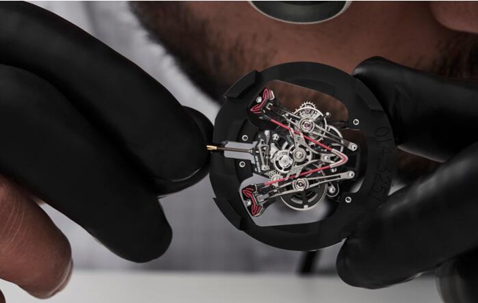 这个充满诗意的画面,被RICHARD MILLE的工程师和工艺大师们逐一拆解并实现:表盘上宇航员的头盔由五级钛合金雕刻,并经手工绘制;面罩上反射出的地球景象,通过复杂的微绘大明火珐琅工艺实现,色彩渐变需在850度高温下反复烧制。