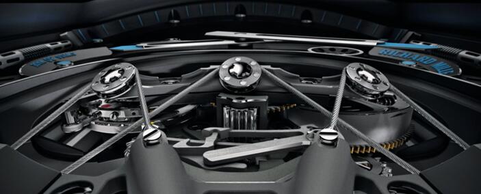 其在表镜上的核心解决方案是借鉴汽车工业技术,在两层蓝宝石水晶间加入一层聚乙烯薄膜,使其在遭受马球球棍的猛烈撞击时,只会开裂而不会碎裂飞溅,保护了机芯与佩戴者。同时,机芯本体通过10个滑轮和4个张紧轮,由两根直径仅为0.27毫米的钢索悬吊于表壳中央。这个精妙的结构如同建筑领域的悬索桥,能有效吸收和缓冲来自外部的冲击能量,保护机芯免受震荡损害。